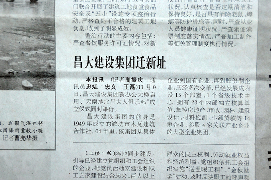 2013年11月09日,集團喬遷至高新區(qū)健康東街6999號,濰坊日報、濰坊晚報刊登集團喬遷慶典的報道。 ![]() ![]() ![]() ![]() ![]() 以下為《濰坊建筑》刊登昌大建設(shè)專業(yè)公司、專業(yè)人士系列報道: ![]() ![]() ![]() ![]() ![]() ![]() ![]() ![]() ![]() ![]() ![]() ![]() ![]() ![]() ![]() ![]() ![]() ![]() ![]() ![]() ![]()