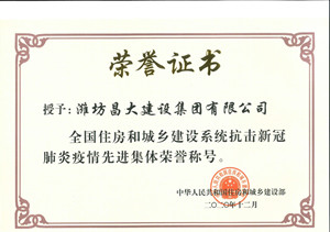 集團榮獲全國住建系統(tǒng)抗擊新冠肺炎疫情先進集體榮譽稱號