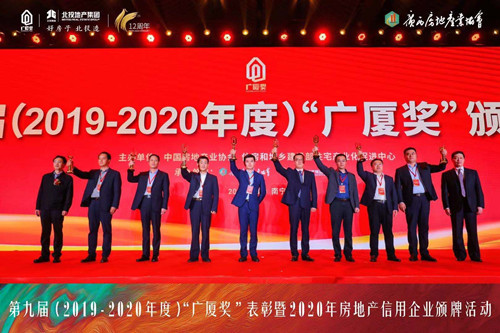2021年4月8日,由中國房地產(chǎn)業(yè)協(xié)會(huì)、住房和城鄉(xiāng)建設(shè)部住宅產(chǎn)業(yè)化促進(jìn)中心共同主辦的第九屆(2019-2020年度)“廣廈獎(jiǎng)”表彰暨2020年房地產(chǎn)信用企業(yè)頒牌活動(dòng)在廣西南寧隆重舉行。由集團(tuán)匠心筑造的泰和上筑北區(qū)項(xiàng)目獲得的“廣廈獎(jiǎng)”獎(jiǎng)杯由此領(lǐng)回。這是集團(tuán)又一次榮獲房地產(chǎn)業(yè)的最高獎(jiǎng)“廣廈獎(jiǎng)”。