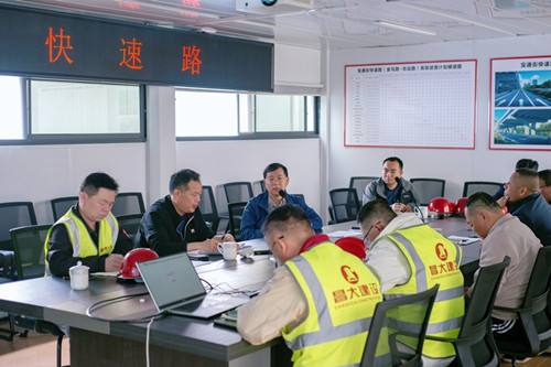 2021年5月4日,正值“五·四”青年節(jié)。上午,集團(tuán)董事長徐鵬強(qiáng)專程赴集團(tuán)承建的寶通街高架快速路工程現(xiàn)場進(jìn)行調(diào)研。在現(xiàn)場,徐董事長自西向東邊實(shí)地察看邊向現(xiàn)場人員了解情況,最后在四建公司項(xiàng)目現(xiàn)場辦公室召開座談會。徐董事長對項(xiàng)目前期的整體組織工作表示滿意,重點(diǎn)強(qiáng)調(diào)了三項(xiàng)工作:一是要充分認(rèn)識該項(xiàng)目的政治意義,充分利用好項(xiàng)目來提升集團(tuán)的組織、技術(shù)能力和專業(yè)配套能力;二是充分發(fā)揮集團(tuán)的本土優(yōu)勢,指揮部和項(xiàng)目部要對工期再仔細(xì)研究,在保證質(zhì)量的前提下盡可能把工期提前;三是把現(xiàn)場管理工作再行提升,現(xiàn)場宣傳和現(xiàn)場人員的服裝統(tǒng)一問題要抓緊解決好。