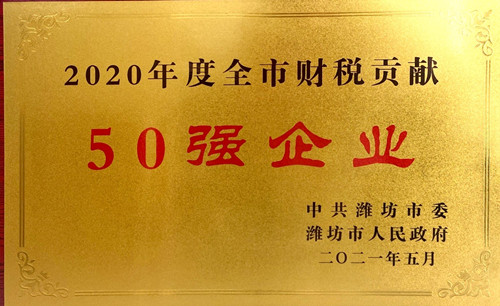 2021年5月11日,集團辦公室將濰坊市委、市政府頒發(fā)的兩個重量級榮譽獎牌領(lǐng)回:2020年度全市財稅貢獻(xiàn)50強企業(yè);2020年度全市高質(zhì)量發(fā)展領(lǐng)軍企業(yè)。