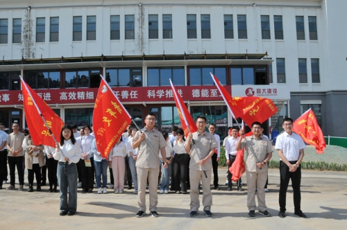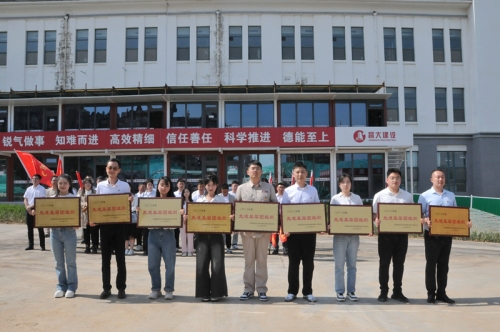 下午,在集團二建公司總承包施工的位于青州的濰坊工程職業(yè)學院新建學生公寓樓項目現(xiàn)場,舉行了全國、山東省、濰坊市三級青年文明號授旗儀式暨2023年度先進基層團組織頒獎儀式。兩支全國“青年文明號”、四支山東省“青年文明號”、兩支濰坊市“青年文明號”紅旗列列,彰顯光榮的歷史和突擊的力量;九個先進基層團組織獎牌生輝,昭示青春的燦爛和奮斗!