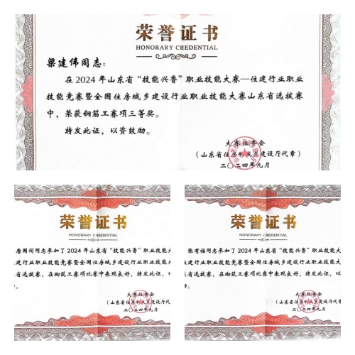 2024年9月8日-12日,山東省住房和城鄉(xiāng)建設(shè)廳舉辦2024年山東省“技能興魯”職業(yè)技能大賽,集團(tuán)公司派員參加鋼筋工和砌筑工賽項(xiàng),并取得鋼筋工三等獎(jiǎng)、砌筑工優(yōu)秀獎(jiǎng)的好成績。