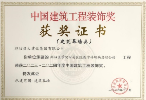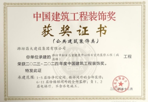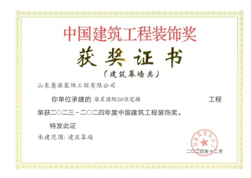 2024年12月10日,中國建筑裝飾協(xié)會(huì)在北京召開大會(huì),表彰2023~2024年度“中國建筑工程裝飾獎(jiǎng)”工程。集團(tuán)裝飾幕墻工程公司、山東鳶港裝飾工程有限公司的三項(xiàng)工程榮獲五個(gè)獎(jiǎng)項(xiàng):濰坊醫(yī)學(xué)院附屬醫(yī)院教學(xué)科研病房綜合樓(建筑幕墻類和幕墻設(shè)計(jì)類)、濰坊市婦女兒童健康中心病房樓(公共建筑裝飾類和公共建筑裝飾設(shè)計(jì)類),柒星國際2#住宅樓(建筑幕墻類)。