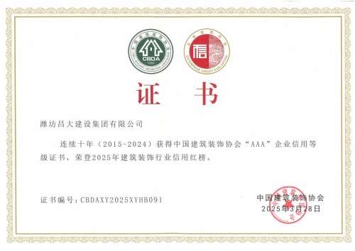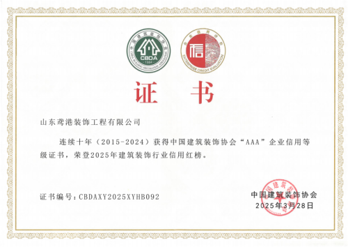 2025年3月28日,中國建筑裝飾協(xié)會在武漢召開了首屆大國裝飾可持續(xù)發(fā)展大會。會上發(fā)布了建筑裝飾行業(yè)信用建設十年發(fā)展報告,公布了連續(xù)十年(2015-2024)榮獲中國建筑裝飾協(xié)會AAA信用等級企業(yè)名單及2025年度建筑裝飾行業(yè)信用紅榜獲獎名單,并頒發(fā)了榮譽證書。
