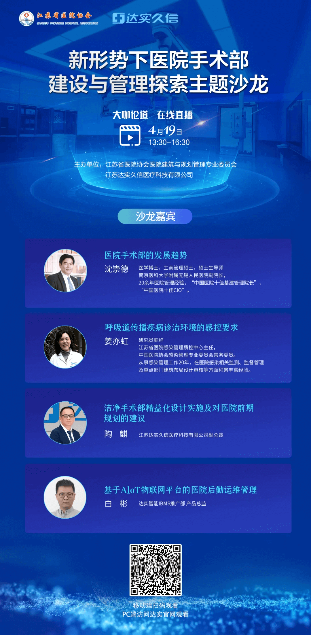 本次直播,邀請到了多位醫(yī)療領域的資深大咖,互相碰撞思想,探討心得。4大課題,180分鐘干貨,從理論到實踐,從現(xiàn)狀到發(fā)展,一場關于醫(yī)院手術部建設與發(fā)展的學術盛宴即將開啟。