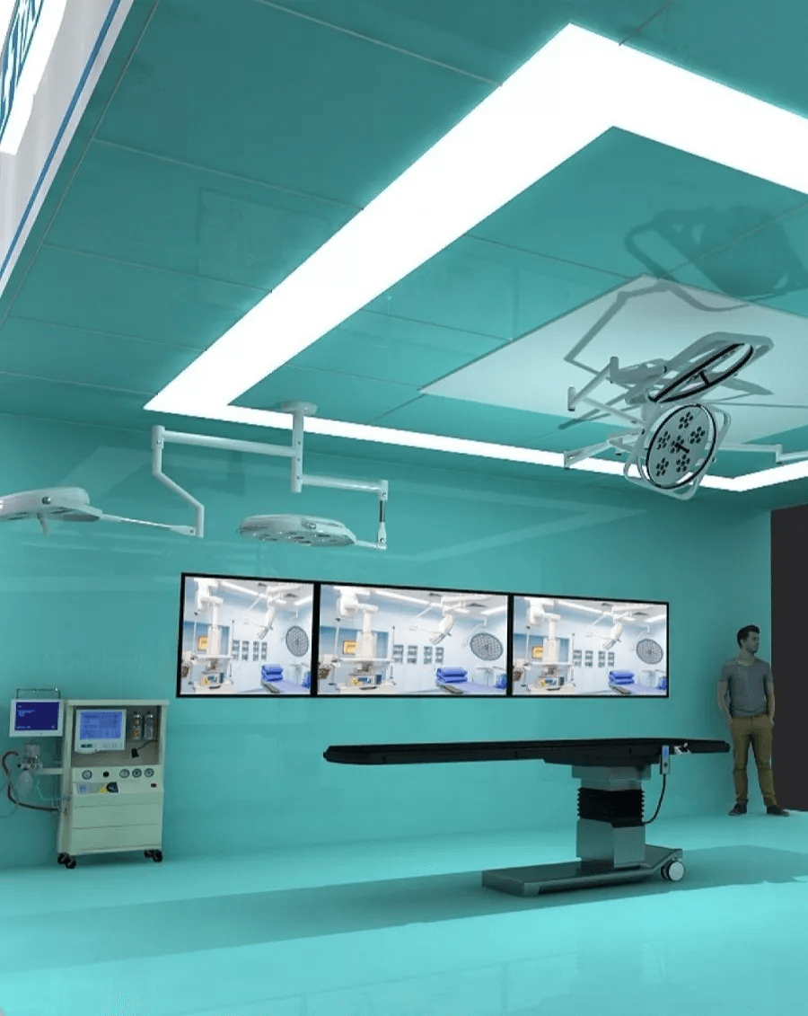 在這里,富含科技感的美學設(shè)計,一個“炫”字難以形容,通過情景體驗的模式,現(xiàn)場還原了新型一體化手術(shù)室的全部影像所需。